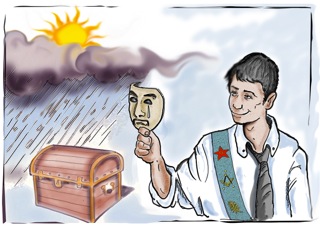 Enlever le bandeau des préjugés, des a priori, des stéréotypes, des clichés, des jugements tout fait, bref, de nos croyances, inaugure le début de la quête et continue, avec de plus en plus de précision, d’aisance et parfois, sinon de plaisir, du moins de soulagement. C’est tous les symbole du Vieil Homme qu’il faut « tuer », une des lectures possibles d’Hiram.